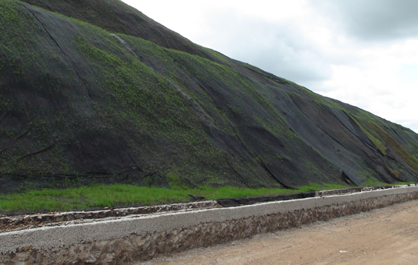 山東德旭達生產的柔性生態水土保護毯的三維結構由特殊工藝沖壓成型,這種結構設計增加了水土保護毯40%的表面積,一方面能更好的吸著種子發芽所需要的水汽,另一方面可大量捕獲水流中的泥沙顆粒和腐殖質,創造有利于植物生長的微型生態環境。柔性生態水土保護毯增加80%的種子發芽率。