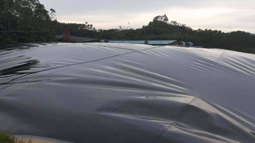 豬場將原干清糞工藝改建成“水泡糞”工藝厭氧塘的原理與其他厭氧生物處理過程一樣,依靠厭氧菌的代謝功能,使有機底物得到降解。全封閉厭氧塘就是利用黑色的HDPE防滲透膜將氧化塘底部、頂部密封成一體的大型厭氧反應器,俗稱黑膜沼氣池,它集發酵、貯氣于一體。由于它運行費用低、工程造價低、污水處理效率高、沼氣產量多等特點。